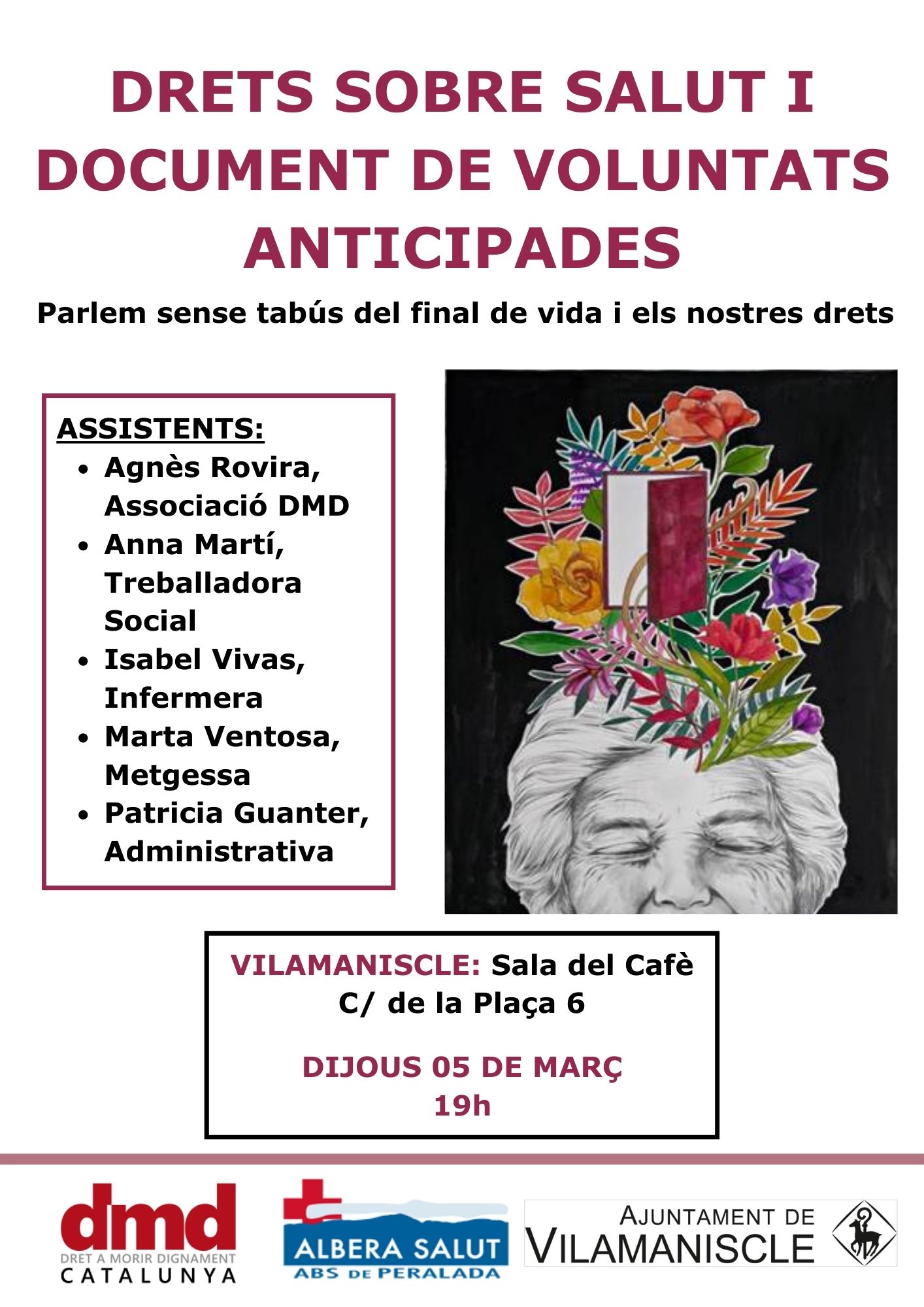 INFORMACIÓ El proper dijous 05 de març a les 19:00 hores, tenim una xerrada a les Sales del Cafè molt interessant DRETS SOBRE SALUT I DOCUMENT DE VOLUNTATS ANTICIPADES.